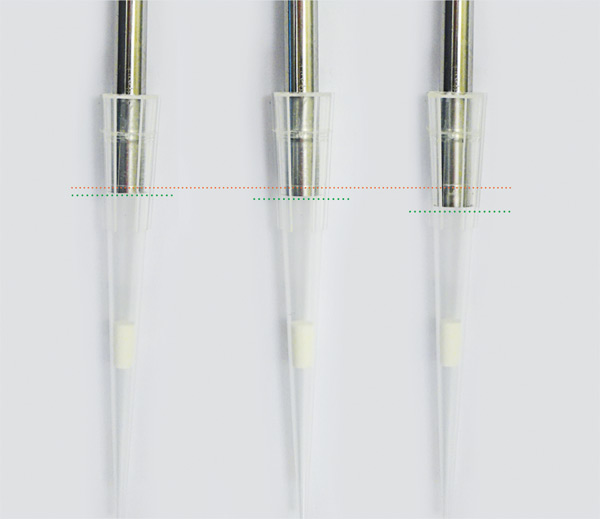 移液器調節到一定的氣墊體積的**和靜水壓力。比較不同制造商的提示,很容易看出,尺寸和形狀的差異。此外,**到**的質量也是一個影響因素。測試產品(精確尺寸!)適合不同的位置,其中三個隨機選擇的提示來自一盒其他制造商提示。