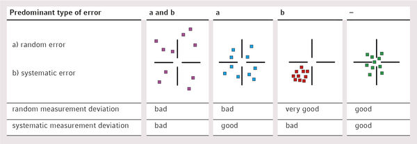 該圖顯示了500μl樣品的隨機和系統(tǒng)測量偏差。移液結(jié)果可能不精確,精確但不準確,理想情況下精確準確。